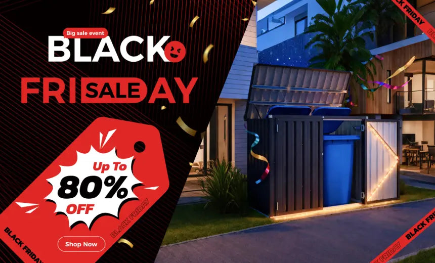 YODOLLA Outdoor Trash Can Storage Shed, Garden Storage Box, Metal Outdoor Shed with Double Door