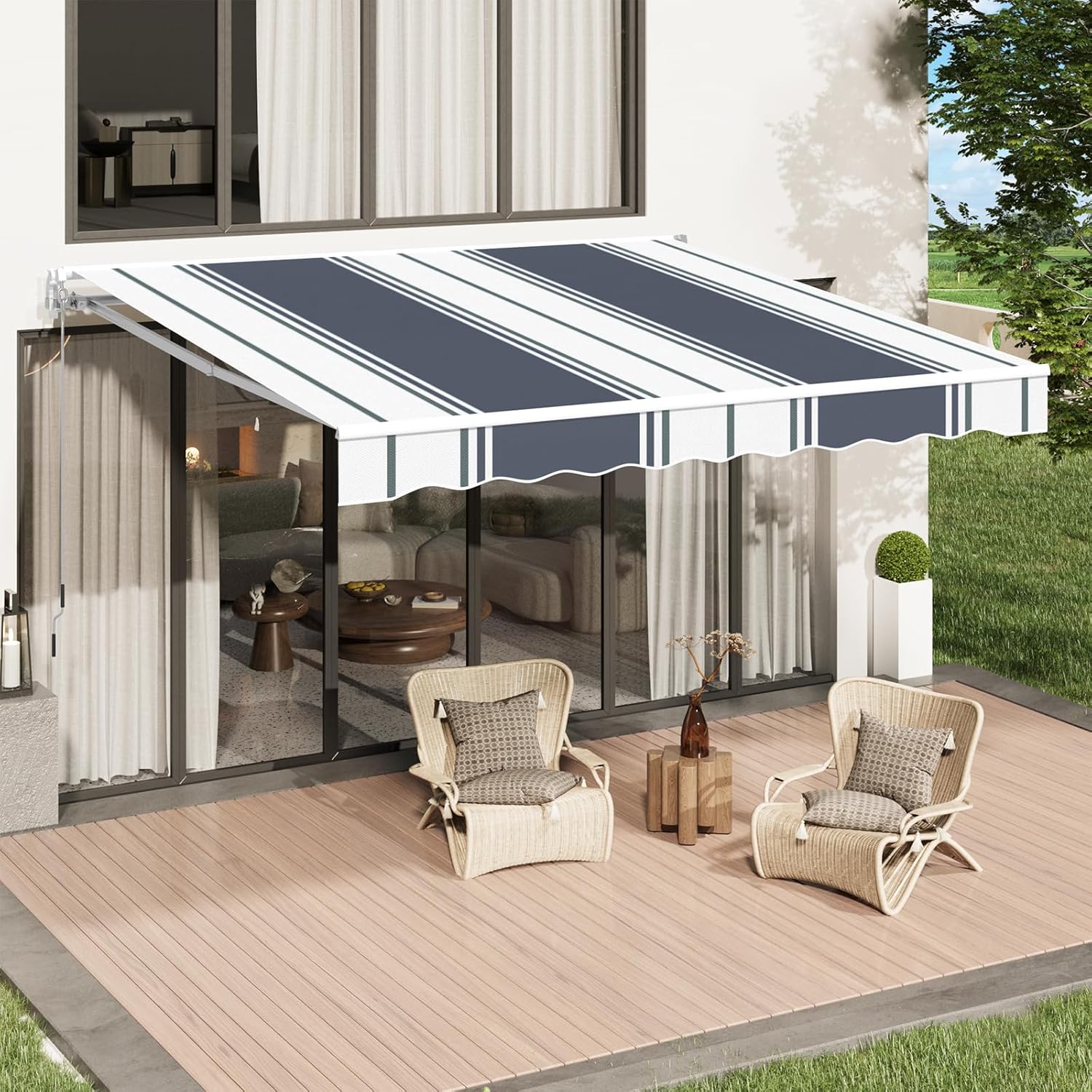 YODOLLA 305 × 244 cm Retractable Manual Awning, Folding Awning with Hand Crank Patio