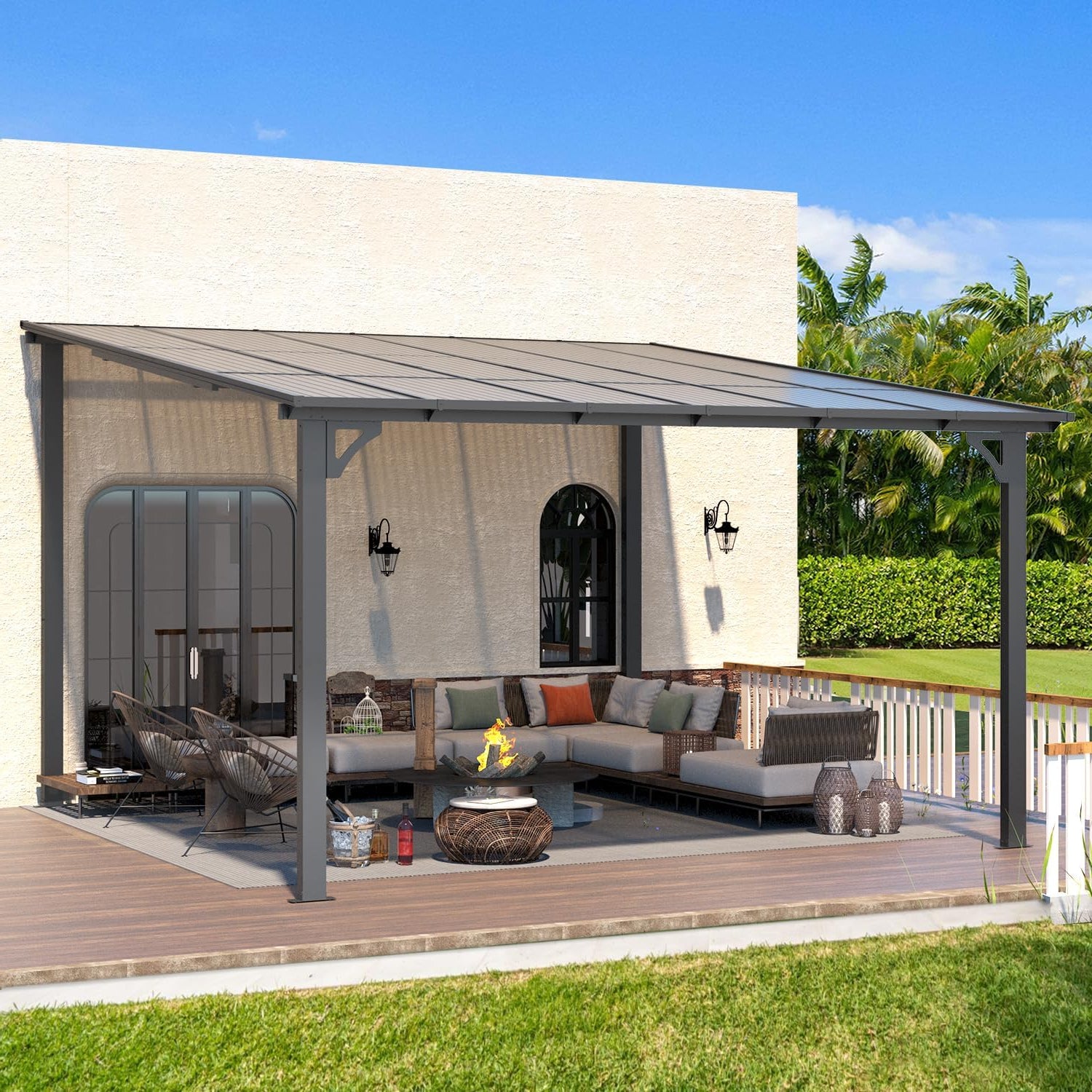 YODOLLA 3.65m x 3.65m Wall-Mounted Aluminium Awning Gazebo, Lean to Pergola