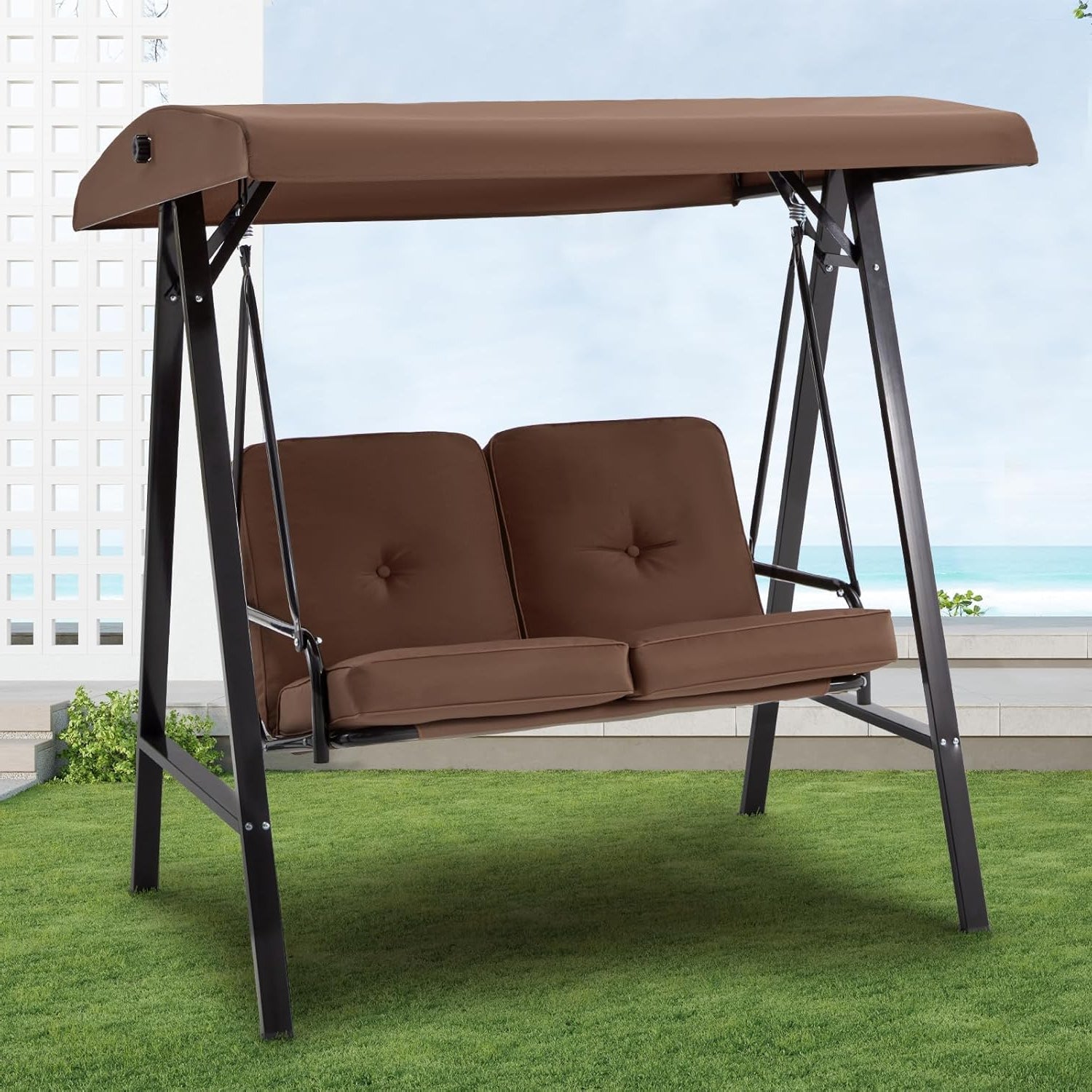 YODOLLA Garden Swing Chair, Swing Chairs Thick Padded Seat with Adjustable Tilting Canopy