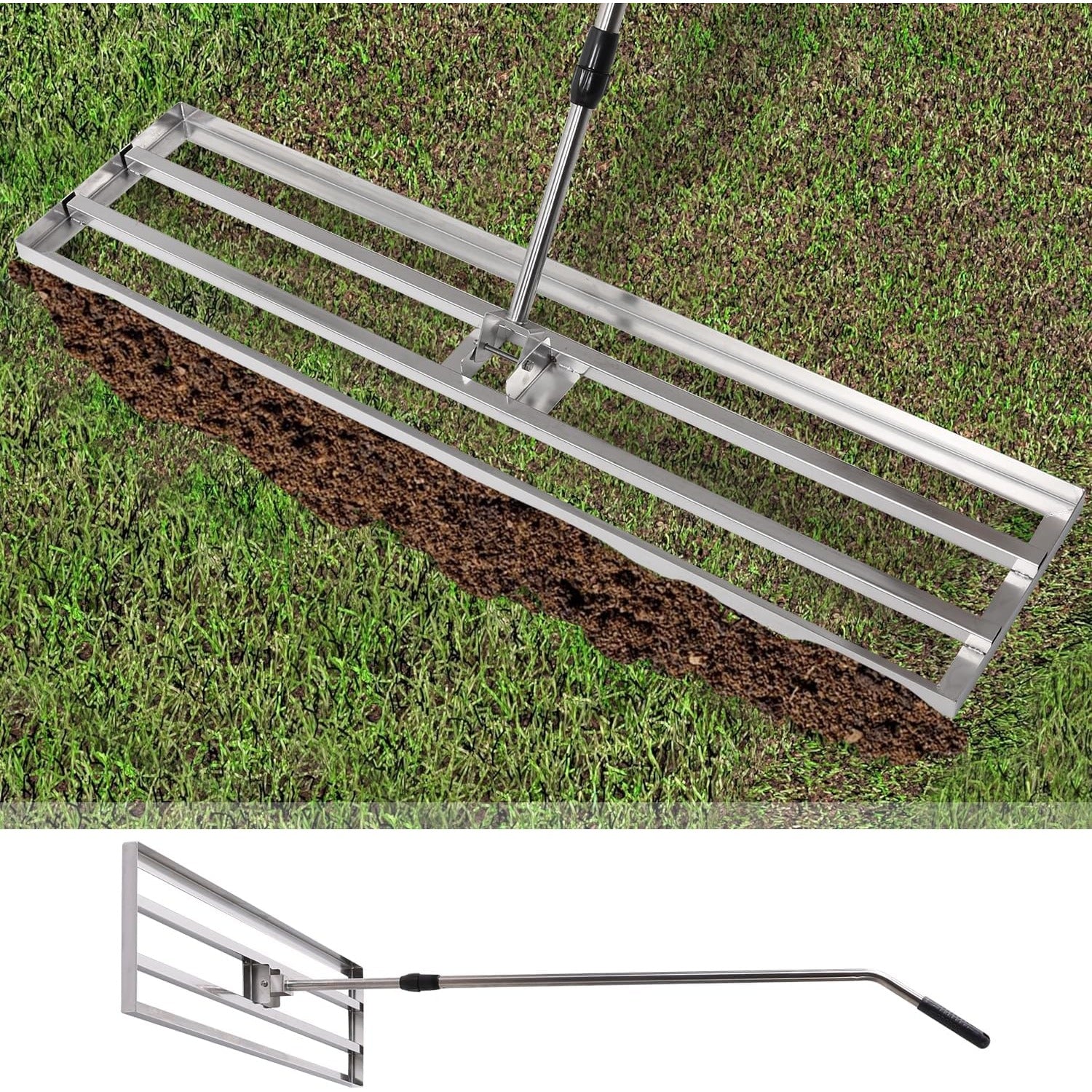 YODOLLA Lawn Leveling Rake, Stainless Steel Lawn Leveller Heavy Duty