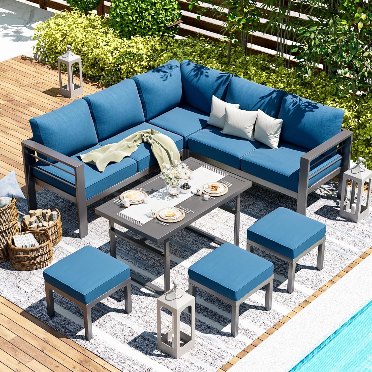 YODOLLA 7 Piece Aluminum Patio Furniture Set Outdoor Patio Conversation Set