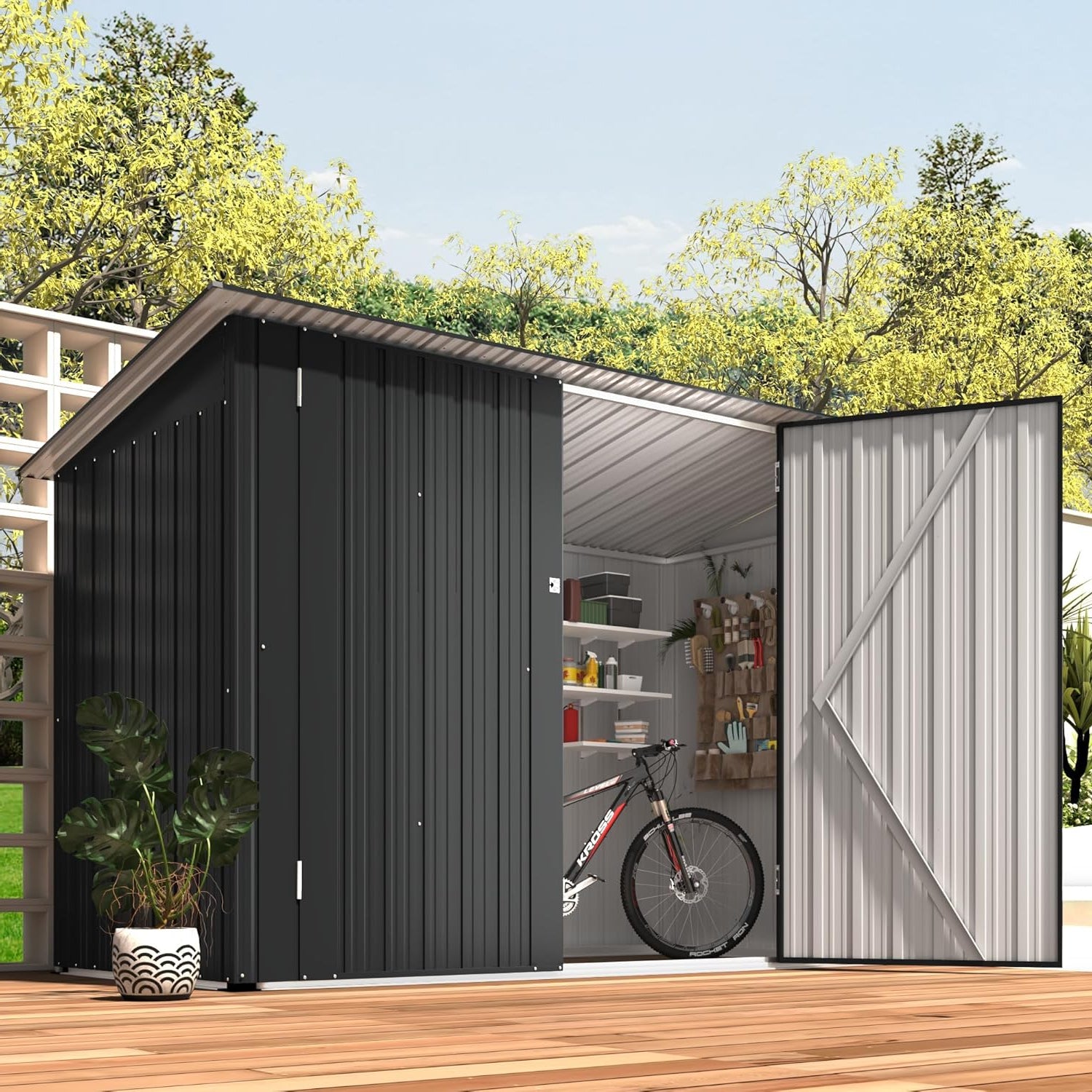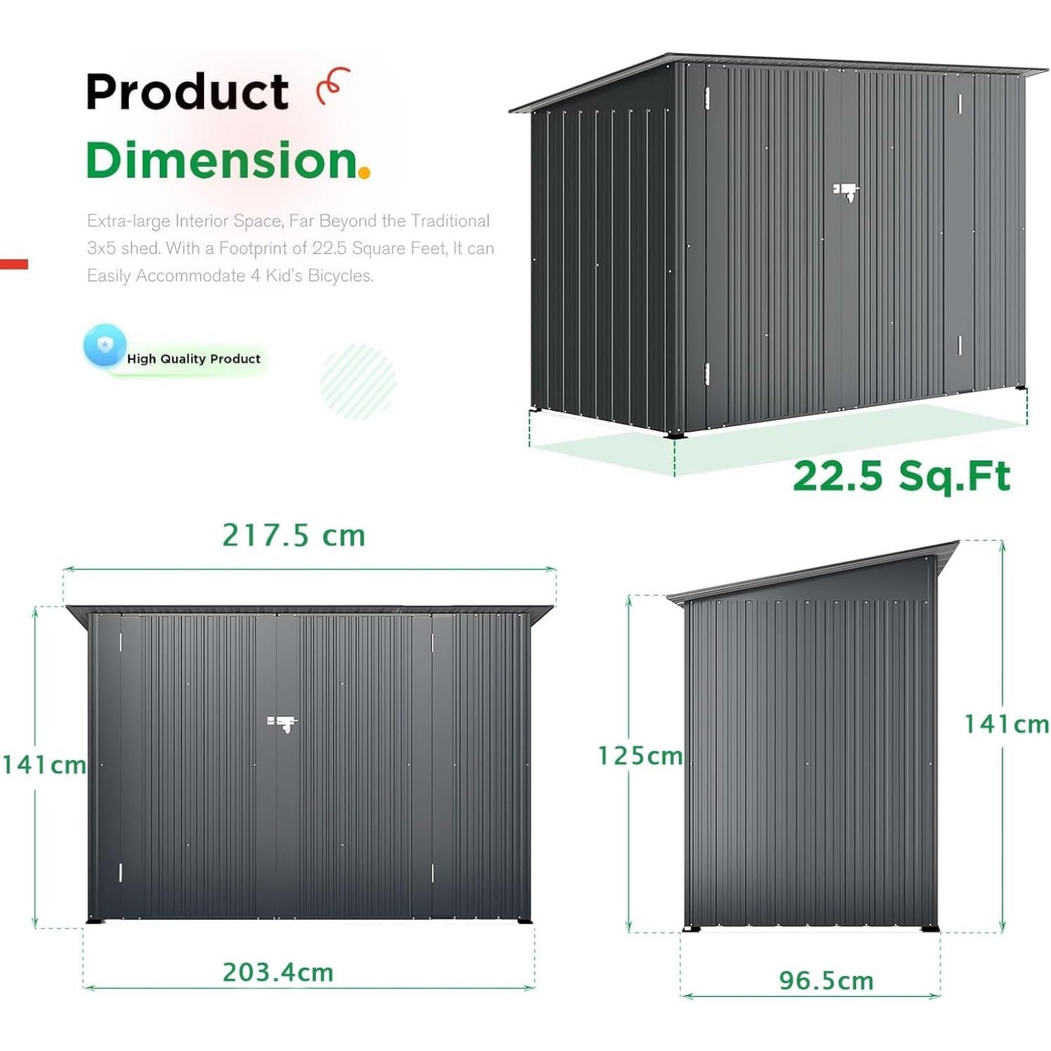 • 【Outdoor Bike Storage 】Designed specifically for bike sheds but not limited to just that. With a footprint of 22.5 Sq.Ft, our outdoor sheds for multiple bikes can accommodate up to 4 bikes, 4 regular lawnmowers, or 3 snowmobiles. This compact storage shed will address all your outdoor storage needs.
