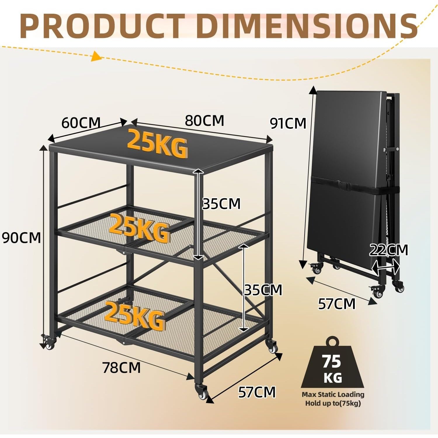 • 【Foldable Pizza Oven Table】This kitchen trolley has opening dimensions: 27 L x 22 Wx 91H cm, Folded dimensions: 47L x 11.4W x 91H cm, when not in use, it will not take up more space and can be placed behind the door.